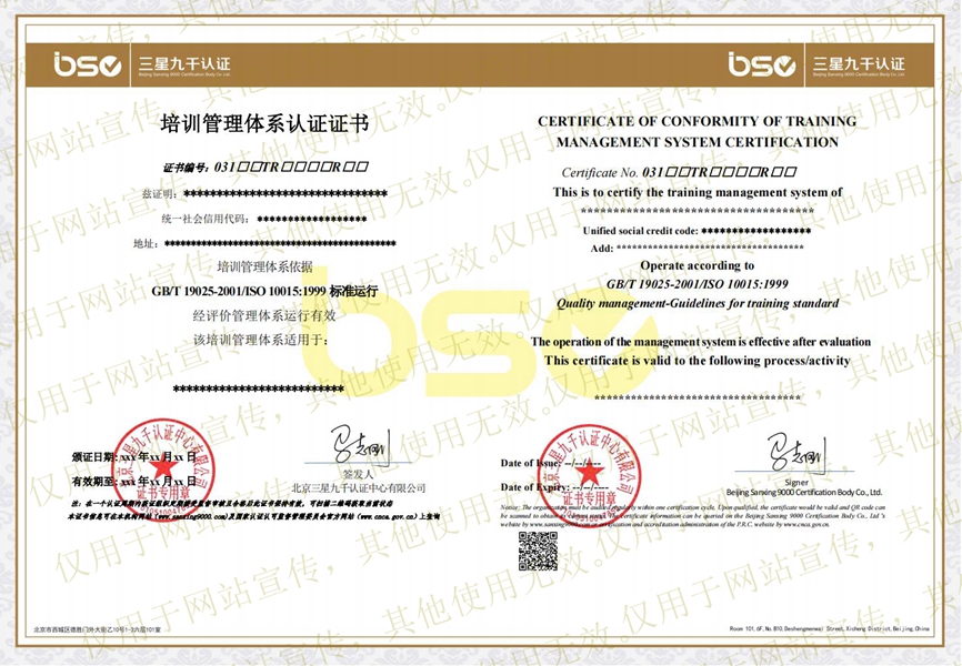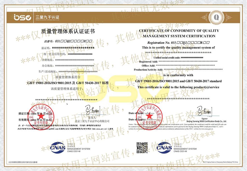 質(zhì)量管理體系認(rèn)證證書(shū)樣本