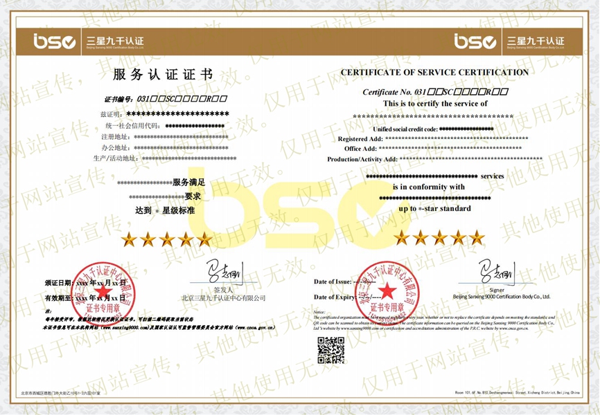 服務(wù)認(rèn)證證書(shū)樣本
