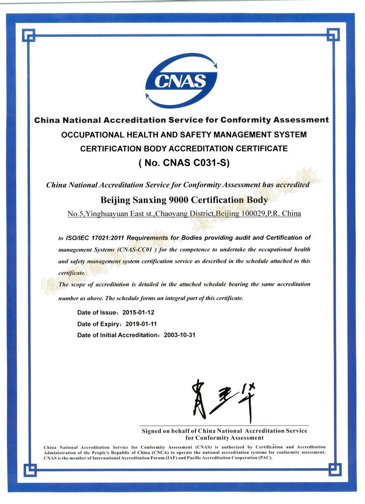 管理體系認(rèn)證機(jī)構(gòu)認(rèn)可證書 |