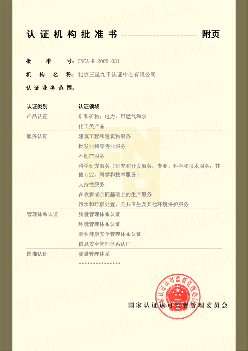 | 認(rèn)證機(jī)構(gòu)批準(zhǔn)證書 | 認(rèn)證機(jī)構(gòu)批準(zhǔn)證書附頁(yè) | 認(rèn)證機(jī)構(gòu)批準(zhǔn)證書附頁(yè) |