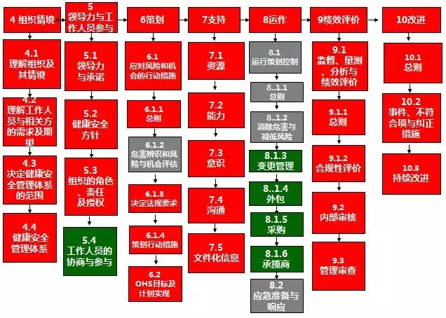 又例如在條款10中,在DIS2中新增條款10.1「總則」,并將原本條款中10.2「持續(xù)改進(jìn)」中的兩個(gè)次條款10.2.1與10.2合并,改為條款10.3。這些的改變主要的目的便是在于使未來(lái)的ISO 45001更易于與ISO 14001整合,畢竟企業(yè)往往將EHS整合為一個(gè)權(quán)責(zé)部門(mén)。