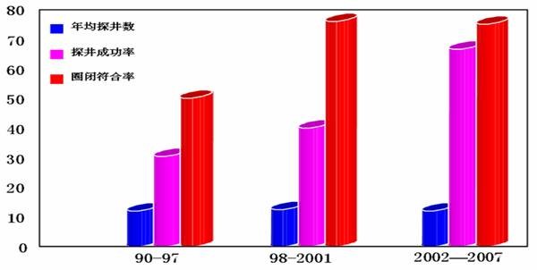 1、技術(shù)創(chuàng)新管理取得了新成效。“十一五”以來,物探院針對蘇北盆地油氣勘探的難點,以解決生產(chǎn)實際的技術(shù)瓶頸為切入點,大力實施科技攻關(guān)。在全院科研人員的共同努力下,共計承擔(dān)了集團公司級課題11項,局級課題42項,院級65項課題。先后取得了“全三維地震勘探技術(shù)研究與應(yīng)用”、“準(zhǔn)噶爾地區(qū)高分辨率地震采集處理方法研究”、“轉(zhuǎn)換波勘探技術(shù)研究與應(yīng)用”、“漢留斷裂帶復(fù)式油氣藏成藏及分布規(guī)律研究”等一批優(yōu)秀科研成果。其中,省部級科技進步獎9項;局級科技進步獎30項。形成了以全三維勘探技術(shù)、西部高分辨率處理及隱蔽油藏解釋技術(shù)、轉(zhuǎn)換波勘探技術(shù)、小斷塊油藏解釋綜合評價技術(shù)、低信噪比資料處理技術(shù)等為代表的特色技術(shù)系列,達到了國內(nèi)領(lǐng)先水平。圈閉鉆研符合率、探井成功率穩(wěn)步提升,油氣產(chǎn)量已由會戰(zhàn)初期的0.6萬噸上升為目前的170.2萬噸,(見下圖)為油田探明儲量連續(xù)十二年超千萬噸,提供了有力的技術(shù)支撐。