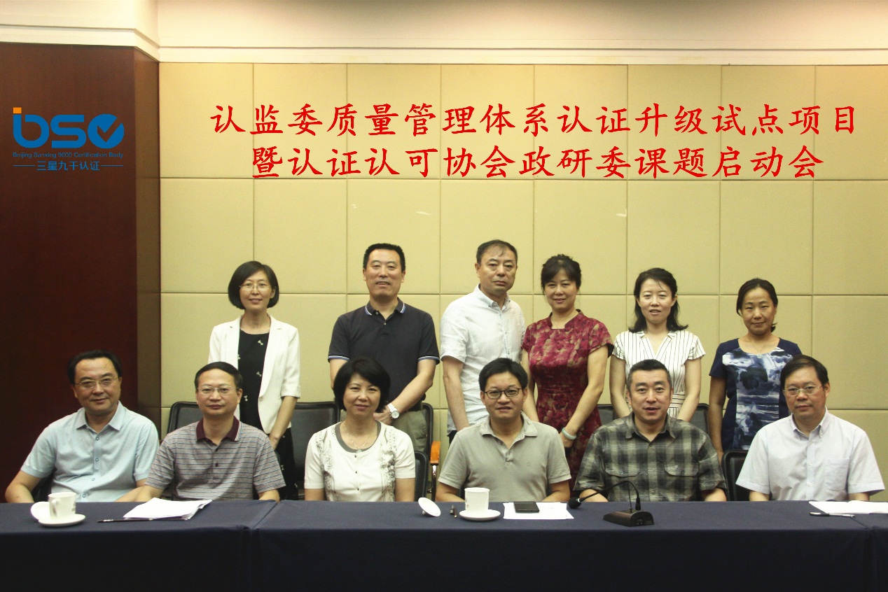 北京三星九千認(rèn)證中心于2017年6月16日在北京西藏大廈召開了認(rèn)監(jiān)委質(zhì)量管理體系認(rèn)證升級試點(diǎn)項(xiàng)目暨認(rèn)證認(rèn)可協(xié)會政研委課題啟動會。國家認(rèn)監(jiān)委法律部王學(xué)勝副主任、認(rèn)可監(jiān)管部付強(qiáng)處長和認(rèn)證認(rèn)可協(xié)會會員部傅瑞云主任蒞臨會議,中國石油和化學(xué)工業(yè)聯(lián)合會及中石油東北化工銷售分公司、北京中化聯(lián)合認(rèn)證有限公司委派代表共同參會。