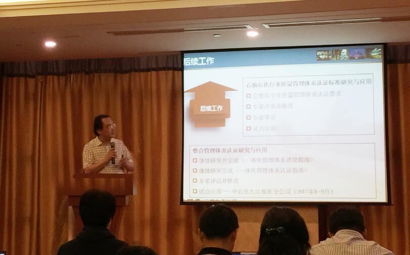 2017年8月10-11日,北京三星九千認證中心馬志剛副總經(jīng)理和技術部張敬部長參加國家認監(jiān)委組織的質量管理體系認證升級試點項目中期匯報全體會議。馬志剛副總經(jīng)理對我中心的《石油石化行業(yè)質量管理體系認證標準研究與應用》和《整合管理體系認證研究與應用》兩個試點項目進度、預期輸出及試點項目宣傳方案進行匯報。