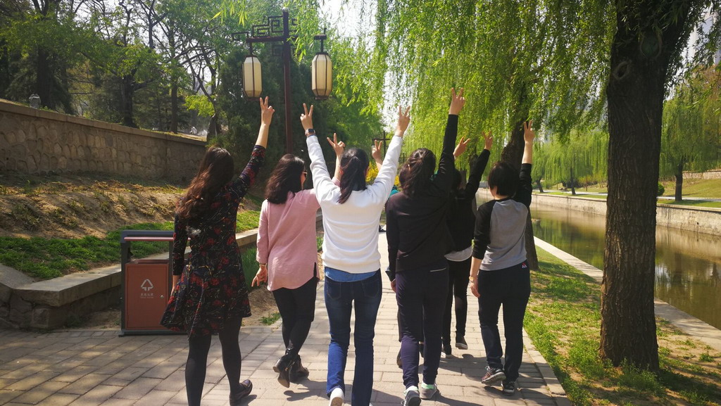 下午1:00,大家沿路元大都遺址公園,欣賞到姹紫嫣紅的桃花、迎春花、海棠花!盎ㄩ_如霞落似雪” ,大家徜徉在燦爛的花海里,三五成群,一路歡聲笑語,不停駐足合影。陣陣花香飄過,真是讓人陶醉其中。