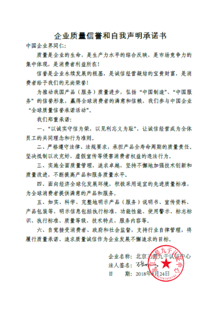 本次“企業(yè)質(zhì)量信譽(yù)和自我聲明承諾”活動(dòng),三星九千等一批北京市重點(diǎn)骨干企業(yè)代表,向社會(huì)公開承諾,遵守《企業(yè)質(zhì)量信譽(yù)和自我聲明承諾書》相關(guān)內(nèi)容,并在《中國質(zhì)量報(bào)》(9月20日A06版