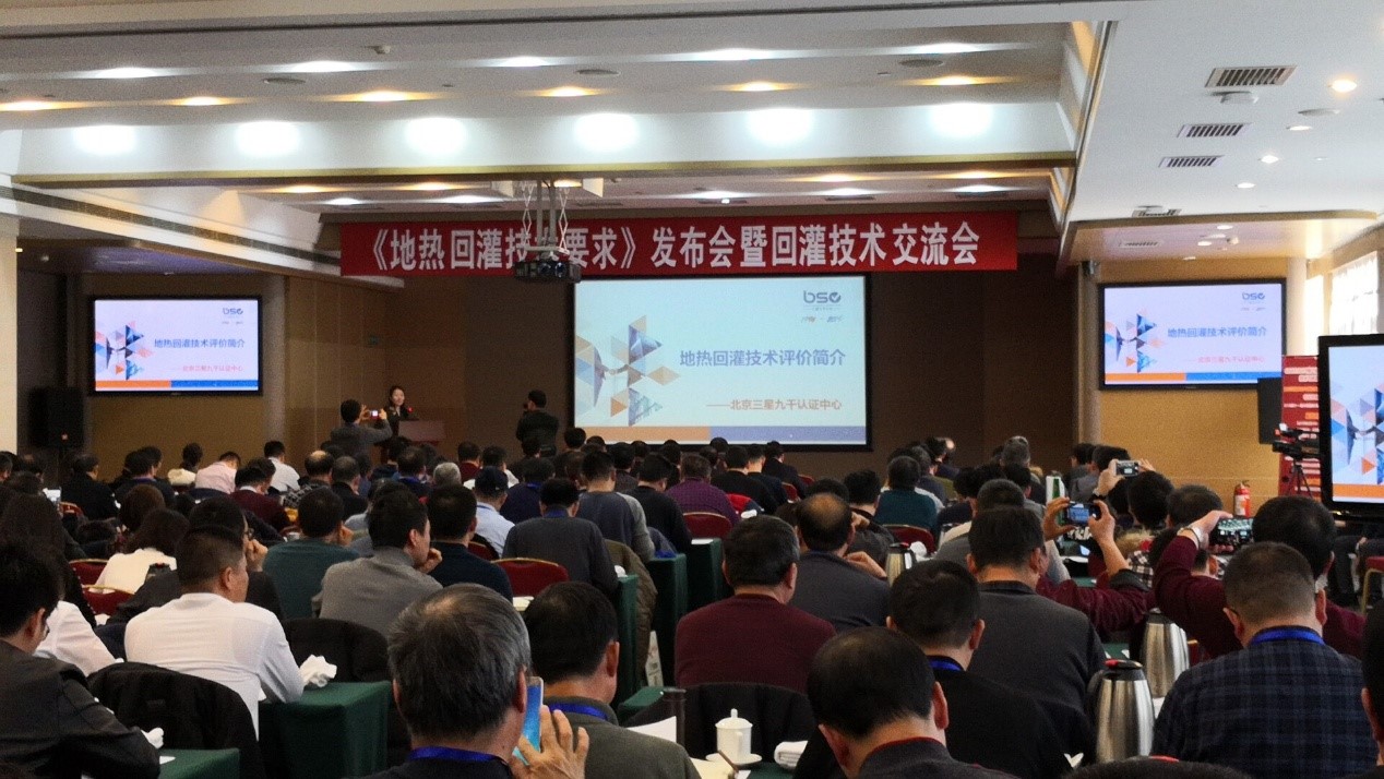2019年1月14日,中華人民共和國能源行業(yè)標(biāo)準(zhǔn)《地?zé)峄毓嗉夹g(shù)要求》發(fā)布會暨回灌技術(shù)交流會在北京勝利飯店圓滿召開。大會發(fā)布了中華人民共和國能源行業(yè)標(biāo)準(zhǔn)《地?zé)峄毓嗉夹g(shù)要求》(NB/T 10099—2018)。來自地?zé)崮苄袠I(yè)知名專家學(xué)者和企事業(yè)單位代表近200人圍繞地?zé)峄毓嗉夹g(shù)進行了深入交流和探討。北京三星九千認(rèn)證中心(以下簡稱三星九千)作為特邀嘉賓單位出席了大會。