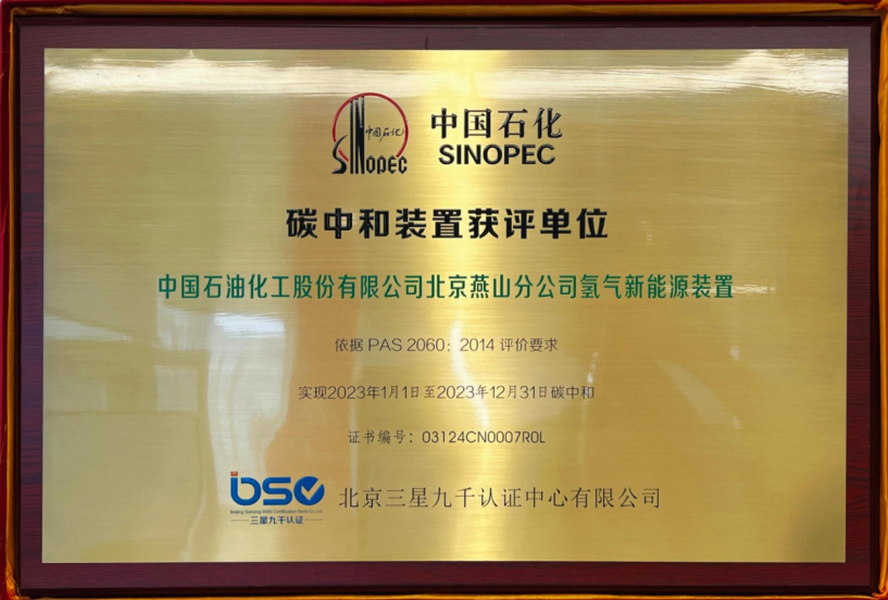 2024年9月2日,北京三星九千認(rèn)證中心有限公司市場總監(jiān)楊曄、外聯(lián)部副經(jīng)理王海燕共同出席了中國石油化工股份有限公司北京燕山分公司氫氣新能源裝置頒證儀式,為氫氣新能源裝置頒發(fā)了“碳中和”評價(jià)證書及銅牌。這是中國石化首套“碳中和”示范裝置。