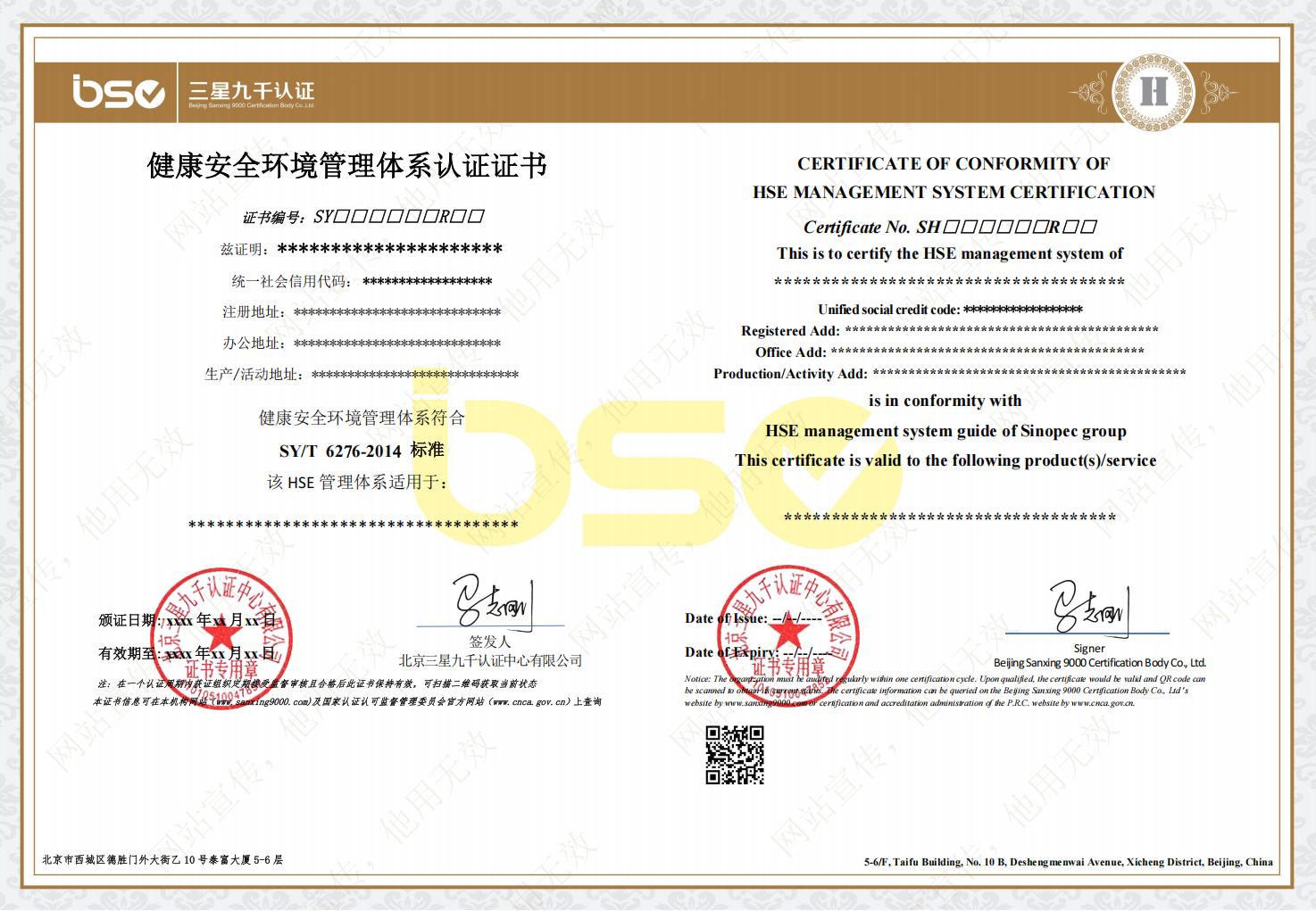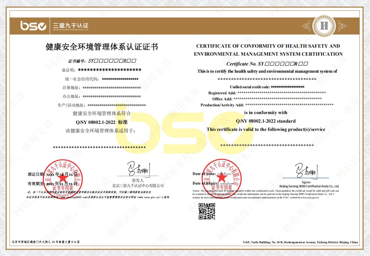 | 健康、安全和環(huán)境管理體系認(rèn)證規(guī)則 | BSC-03-W-01-HSE-2025 | A/0 | 自行制定 | 20250827 | Q/SY08002.1-2022 健康安全環(huán)境管理體系第1部分:規(guī)范 |