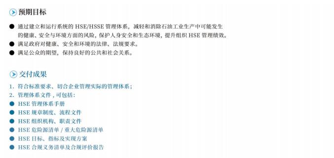 ●減輕和消除石油工業(yè)生產(chǎn)中可能發(fā)生的健康、安全與環(huán)境方面的風(fēng)險(xiǎn),保護(hù)人身安全和生態(tài)環(huán)境,提升組織HSE管理績(jī)效;