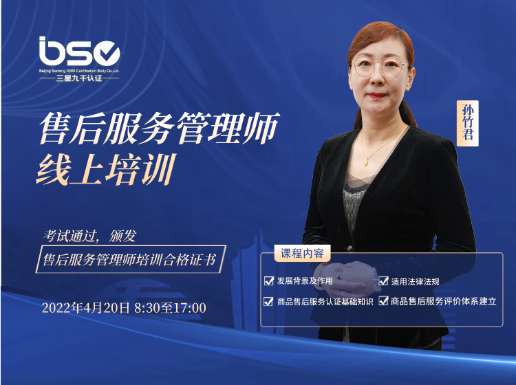 為促進(jìn)獲證組織管理體系積極履行社會(huì)責(zé)任,幫助獲證組織培養(yǎng)優(yōu)秀管理人才,2022年4月15日至20日,北京三星九千認(rèn)證中心有限公司結(jié)合客戶(hù)需求,連續(xù)開(kāi)展社會(huì)責(zé)任管理體系、商品售后服務(wù)管理體系兩期免費(fèi)公益培訓(xùn)及一期售后服務(wù)管理師培訓(xùn),相關(guān)企業(yè)的各級(jí)管理人員踴躍參加。培訓(xùn)由三星九千技術(shù)總監(jiān)孫竹君授課。
