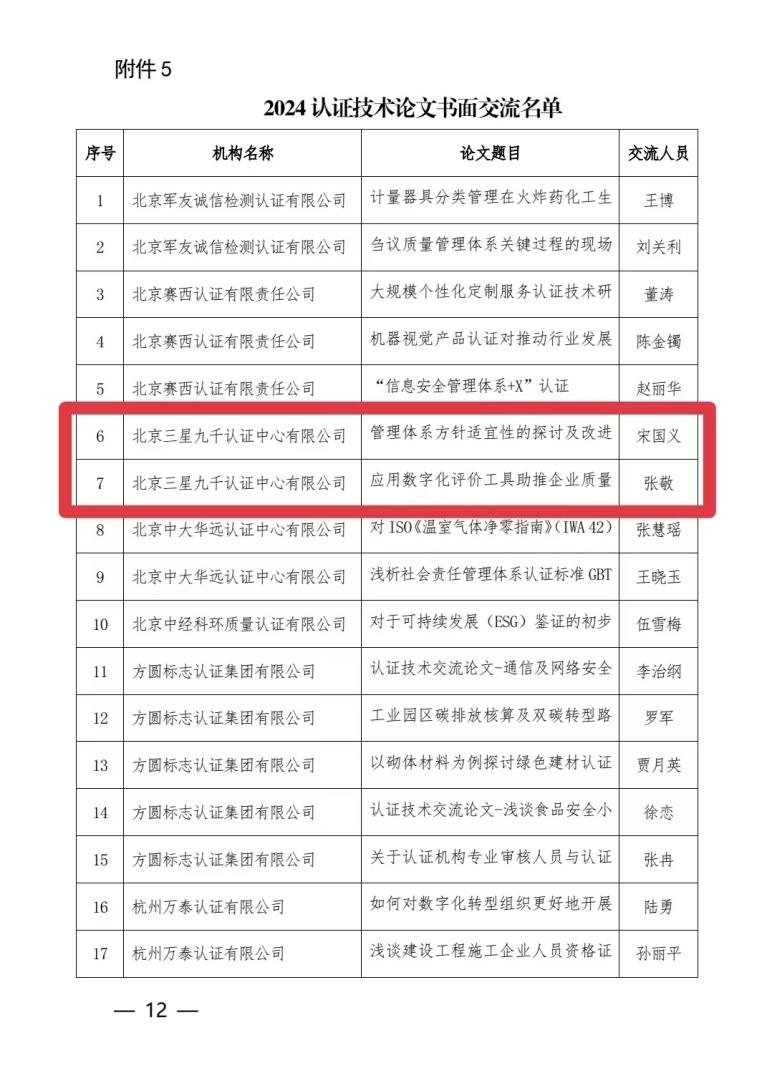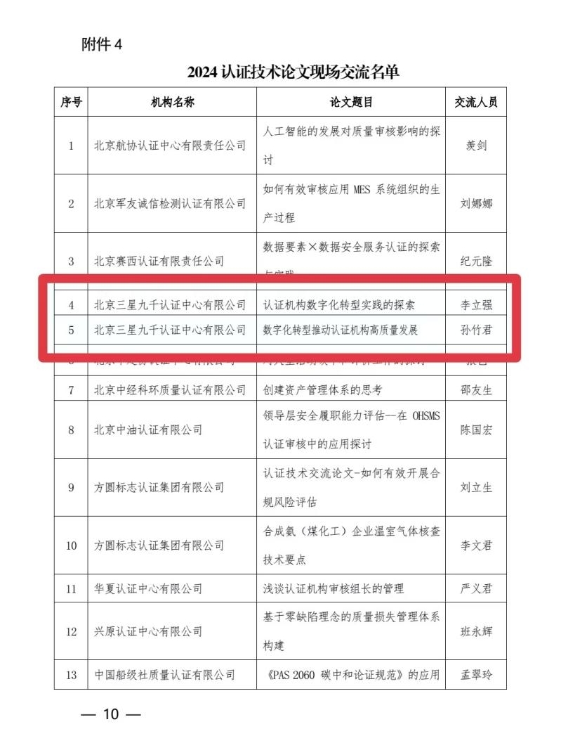 此外,在認(rèn)證技術(shù)論文交流環(huán)節(jié),三星九千也表現(xiàn)出色。公司共有2篇論文在現(xiàn)場交流中獲得展示,分別是《認(rèn)證機構(gòu)數(shù)字化轉(zhuǎn)型實踐的探索》和《數(shù)字化轉(zhuǎn)型推動認(rèn)證機構(gòu)高質(zhì)量發(fā)展》。這兩篇論文深入探討了數(shù)字化轉(zhuǎn)型對認(rèn)證機構(gòu)的影響和推動作用,提出了切實可行的建議和方案,引起了與會專家和同行的廣泛關(guān)注。