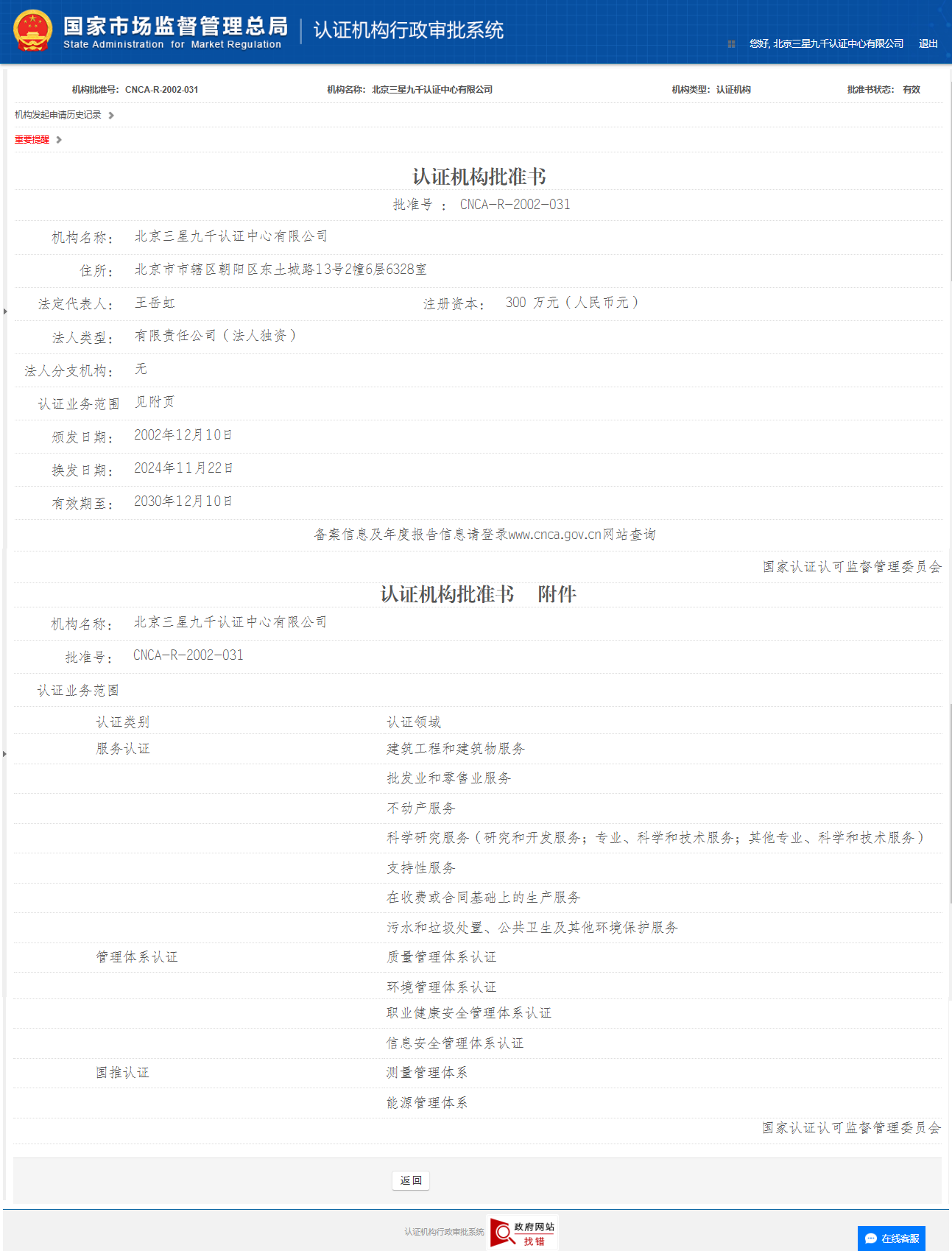 近日,北京三星九千認(rèn)證中心有限公司通過(guò)國(guó)家認(rèn)證認(rèn)可監(jiān)督管理委員會(huì)的行政審批,成功獲得“信息安全管理體系”認(rèn)證領(lǐng)域資格。