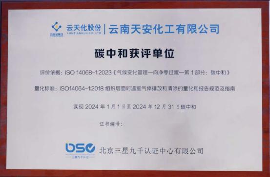 在“雙碳”戰(zhàn)略縱深推進的關鍵階段,云南天安化工有限公司硫酸脫鹽水裝置通過北京三星九千認證中心有限公司的碳中和評價,成為云南省磷化工行業(yè)首家實現(xiàn)裝置“碳中和”的獲評單位。